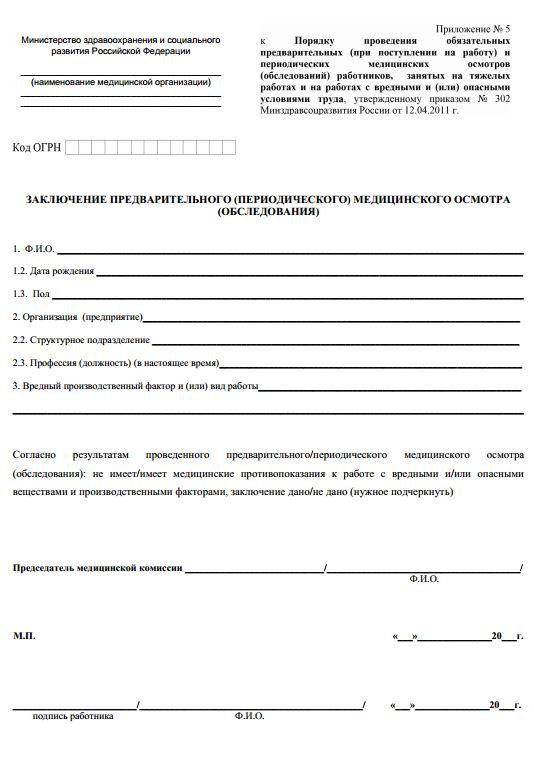 Медосмотр на работу по приказу 302 н